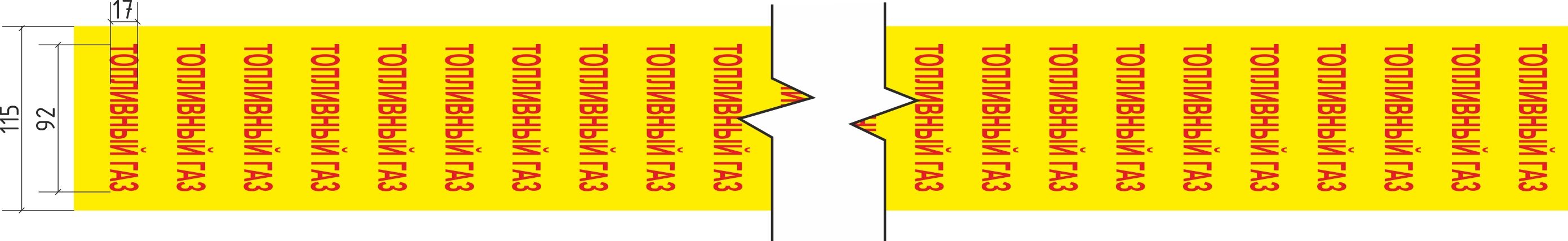 Лента маркировочная Газ низкого давления, 115 мм х 20 м, 43 мм, цвет фона желтый