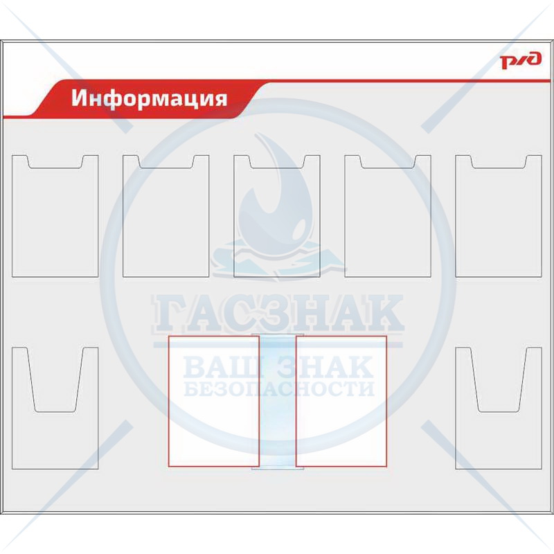 Стенды по охране труда для ОАО РЖД Охрана труда профиль Nielsen, 6 вертикальных карманов А4 (Пластик ПВХ 4 мм, алюминиевый профиль; 1000х1000)