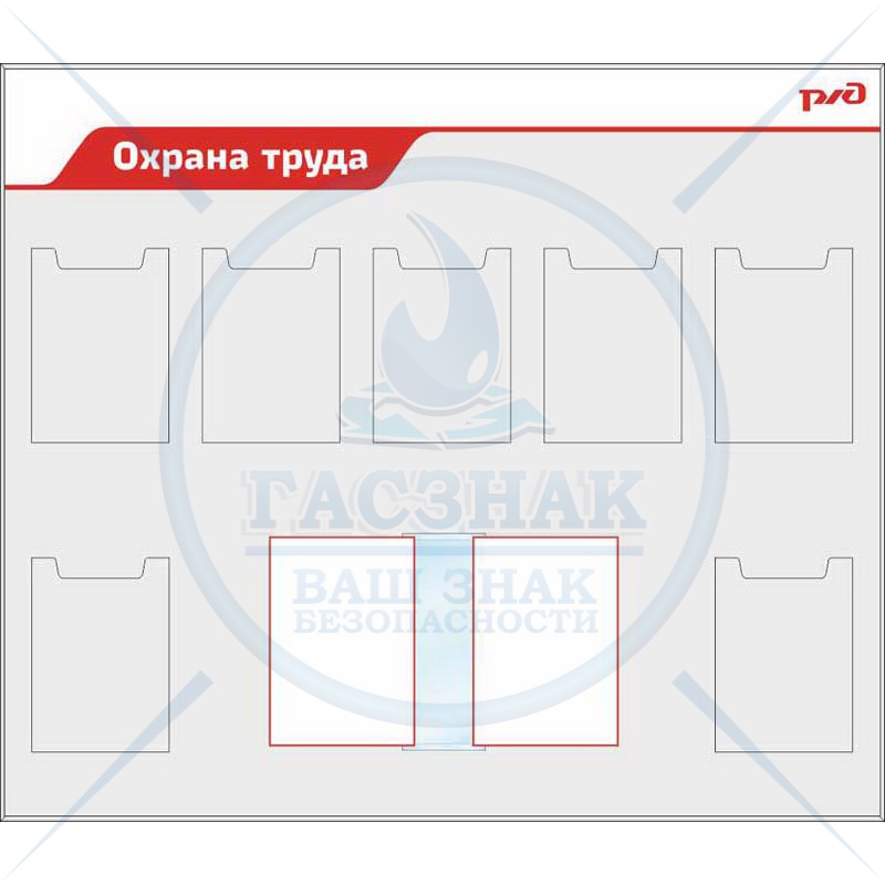 Стенд По охране труда, пластиковый, алюминевый профиль, 9 карманов А4, 1000х1200