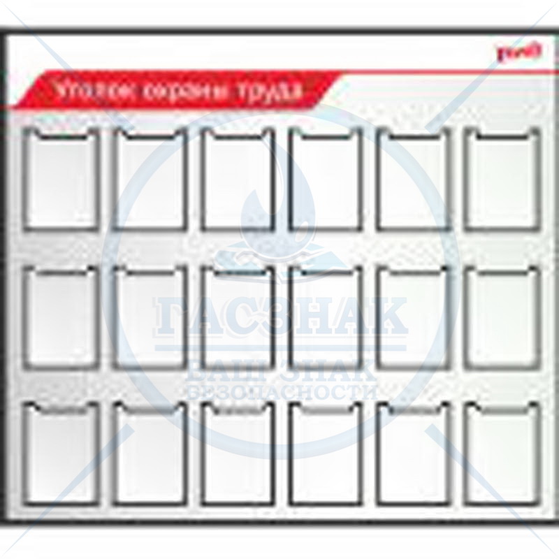 Стенд Охрана труда. ( Пластик ПВХ 4 мм 1250х950; Алюминиевый профиль; 8 карманов А4)