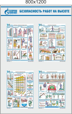 Стенд Безопасность работ на высоте, 4 плаката соуэло А3 (800х1200; Пластик ПВХ 4 мм; Алюминиевый профиль)