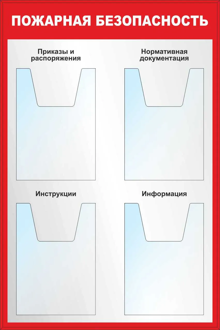 Стенд Пожарная безопасность, 6 плакатов А3, Логотип (1000х1100; Пластик ПВХ 4 мм, алюминиевый профиль; Алюминиевый профиль)
