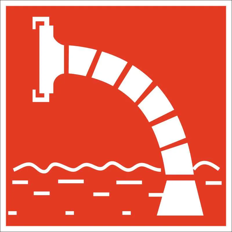 Знак «Пожарный водоисточник» разработан для установки вблизи места, где находится водоем или пожарный подъезд к водоему, предназначенные для забора воды в целях тушения пожара. Может устанавливаться вместе с прочими знаками, которые указывают на направление движения к месту хранения средств пожаротушения и противопожарной защиты, например, с направляющими стрелками. Цветографическое решение соответствует требованиям госстандарта: красный сигнальный цвет — фон, на котором изображен рисунок белого цвета.Материал: металл оцинокванный 0,8 мм, световозвращающая пленка.